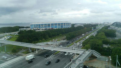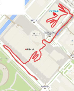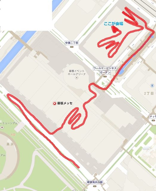 チェックアウト前に駐車場に車を入れ、んーで荷物預かってもらって幕張メッセ。