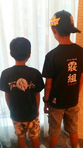 とりあえず部屋を出る前に窓際で撮影会w。お兄ちゃんはゲンを担いで霰T、おチビはちーほくTシャツです^^。