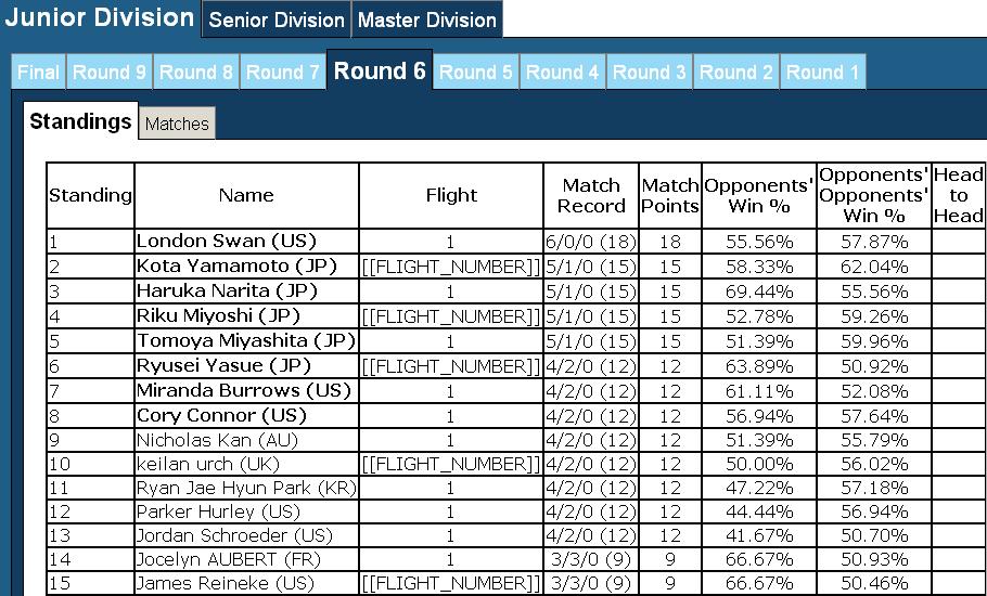 ・長男:世界25位(JC6位 決定戦敗退)